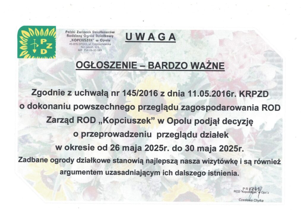 Uwaga przegląd działek